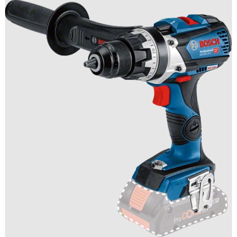 Den kraftige og robuste bore-/skruemaskine GSR 18V-110 C, er designet til at kunne klare de mest krævende opgaver. Den er alsidig i sine muligheder, og kan både bore i træ i en diameter på maks. 82mm. I stål kan den klare en diameter på maks. 13mm. Udover